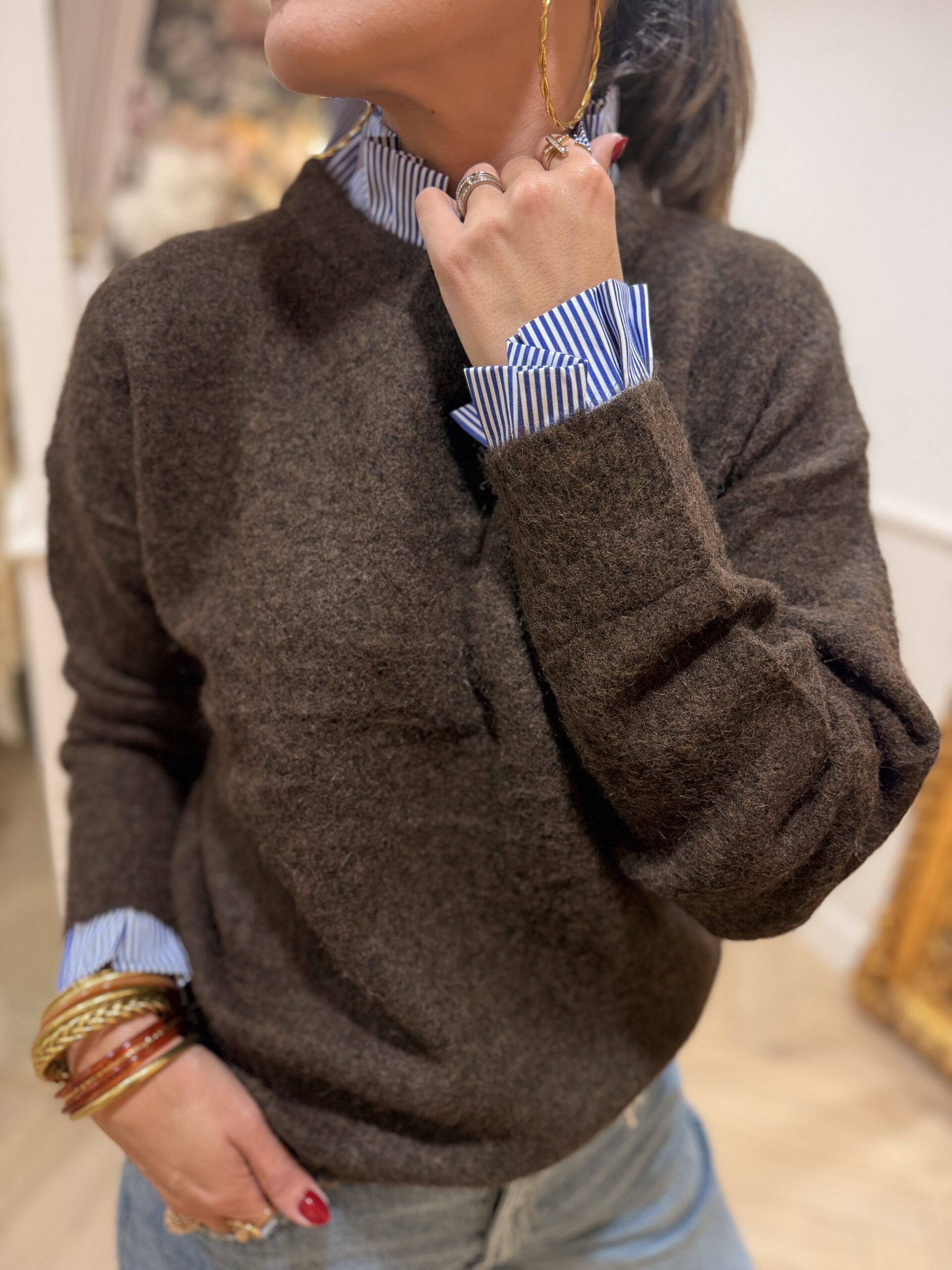 Pull col chemise Pauline marron/bleu